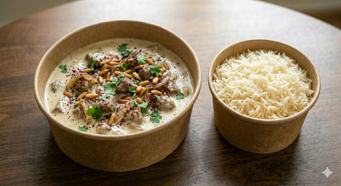 Tender beef pieces slow-cooked in a smooth, creamy yogurt sauce with gently sautéed onions that add natural sweetness and depth of flavor. Served with fluffy white rice for an elegant, warm, and deeply comforting Middle Eastern classic. ✔️ Authentic Middle Eastern comfort ✔️ Smooth and creamy without heaviness ✔️ Warm and filling ✔️ Perfect for meal subscriptions ✔️ A winter favorite