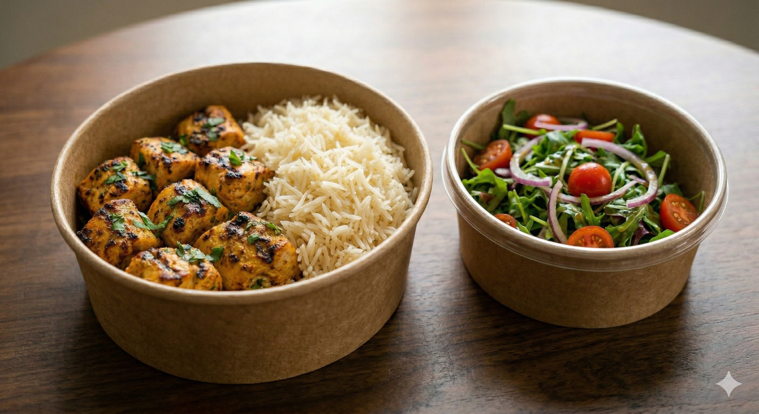 🍢🍋 شيش طاووق مع أرز وسلطة مكعبات صدر دجاج متبّلة بالزبادي، الليمون، والثوم المشوي، تُقدّم مع أرز أبيض نثري وسلطة جرجير منعشة مع الرمان. وجبة خفيفة، متوازنة، ومليئة بالنكهة المتوسطية. بروتين عالٍ ودهون منخفضة ✔️ نكهة الثوم والليمون المنعشة ✔️ وجبة متكاملة (خضار، كارب، بروتين)✔️ مثالية لغداء العمل✔️