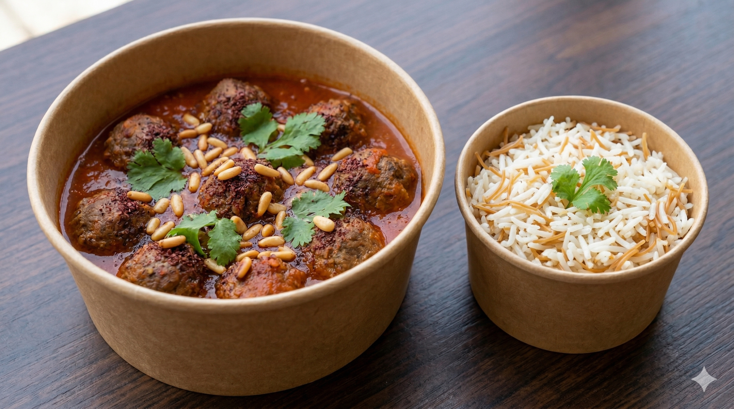 🍅🧆 Dawood Basha (Middle Eastern Meatballs) Hand-rolled beef meatballs seasoned with aromatic spices, simmered in a rich tomato and onion gravy. Served with traditional vermicelli rice and topped with toasted nuts. A royal Levantine classic that balances savory meat with tangy tomato sauce. ✔️ Freshly prepared daily meatballs ✔️ Rich, slow-simmered tomato sauce ✔️ Family favorite and very filling ✔️ A top-tier choice for meal plans