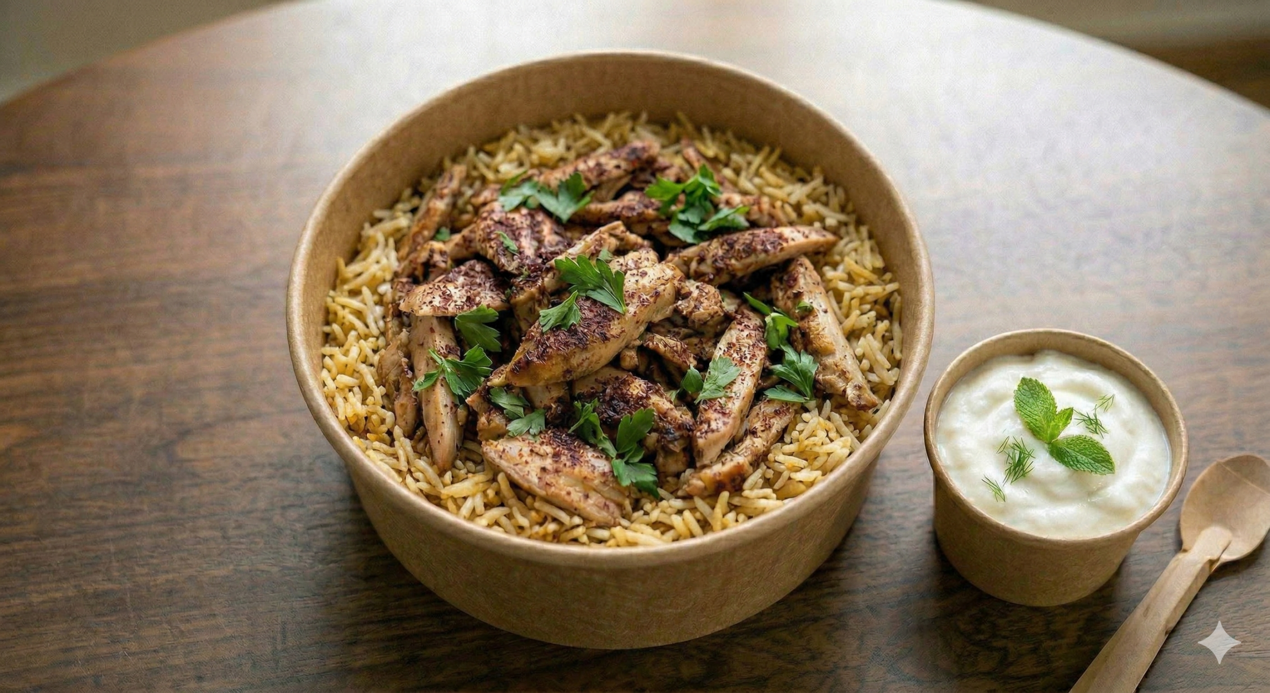 🌯 Oven-Baked Chicken Shawarma with Rice Authentic chicken shawarma strips marinated in a traditional blend of spices, garlic, and lemon, slow-baked to perfection for a rich flavor and tender texture with less fat. Served over a bed of fluffy Basmati rice with a side of homemade garlic sauce (Toum). A satisfying, authentic, and healthily prepared meal perfect for lovers of traditional Middle Eastern flavors. ✔️ Authentic taste without excess oil ✔️ Carefully marinated chicken ✔️ High-protein and filling ✔️ Ideal for daily meals and subscriptions